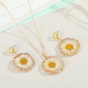 •clear stone press to see front & back of the flower for both earrings & necklace