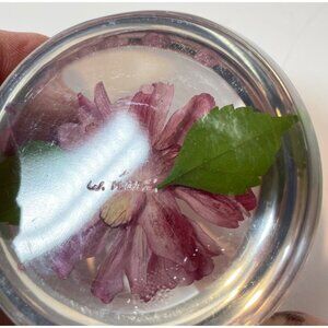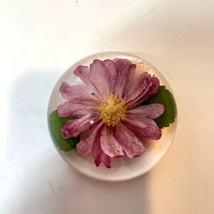 Pressed Pink Flower Paperweight by W. Rolfe Lucite Sphere Encasing Real Flower &