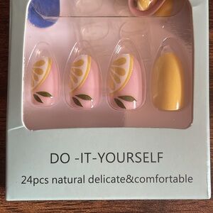 Press-on pink lemon nail kit - 24 pieces