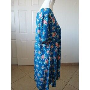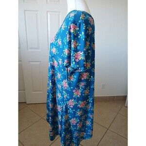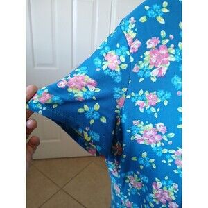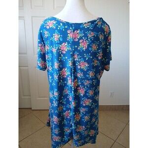 Prestige Edge Women's 1X Plus Stretch T-Shirt Blue Yellow Floral Short Sleeve