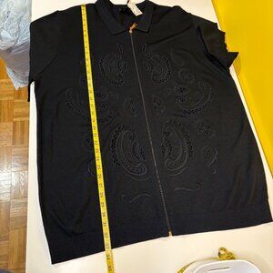 Prestige Original Mens Full Zip Collar T Shirt Size 4X Black Lace Paisley Dressy