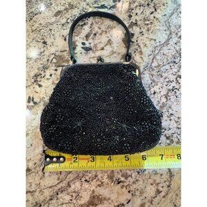 Prestige & York Beaded Evening Bag With Handle Black Satin Interior Clasp