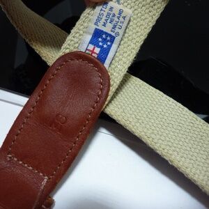 Preston Lobster Belt Men 38 Leather Fabric Navy Made USA New England Fisherman