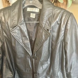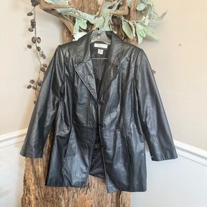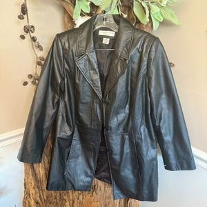 Preston New York Black Leather Jacket Coat Women Petites Small