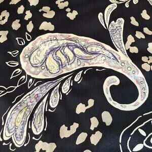 - Beautiful paisley print in black, cream, light gray, lavender, light yellow and sage green with splashes of soft pink. Just stunning.