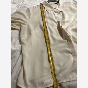 Elegant and timeless Preston & York women’s 18W button-down blouse in a soft cream/ivory shade. Flowy + lightweight with a luxe drape, pointed collar, and classic silhouette — perfect for office wear, capsule wardrobes, quiet luxury looks, preppy chic, Parisian minimalism, old-money styling, or layering under blazers/cardigans.