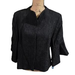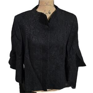 Preston & York Black Embroidered Bell Sleeve Cropped Jacket Size 12