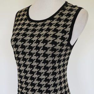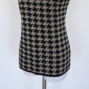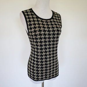 Stylish sleeveless blouse. Features a classic houndstooth pattern. Perfect for any occasion.