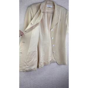 Preston & York Blazer Womens 14 Butter Yellow Silk Short Sleeve Button Up Jacket