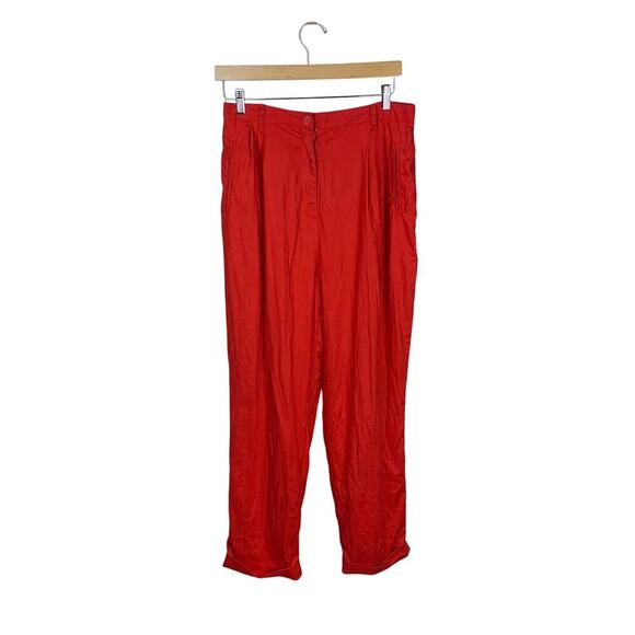 Preston & York Bright Red 100% Linen High Rise Pleated Tapered Cuffed Trousers - Size 16