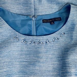 Preston & York Dress Women's Size 12 Blue Jeweled Neck Sleeveless Zip Up