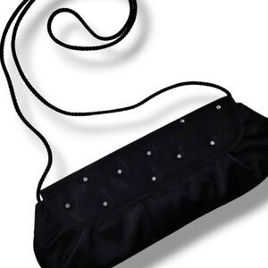 Preston & York Evening Bag Black Satin Rhinestones Rectangle Shoulder Strap