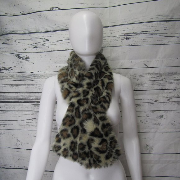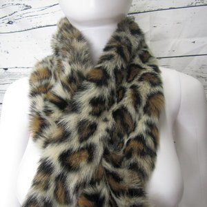 Faux Fur Leopard Print Stole, In very good condition, Fully Lined, 5" x 42"