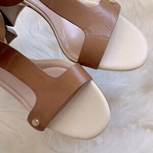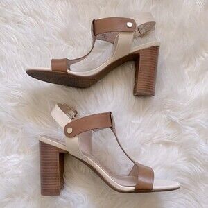 Preston & York Faye Leather T-Strap Block Heel Dress Sandals Sz 10