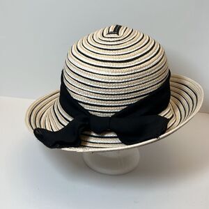 Preston & York Floppy Straw Sun Hat Black and Tan and Cream Striped