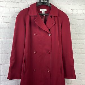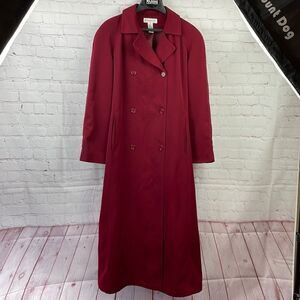 Preston & York Long Red Double-Breasted Trench Coat. Women's Size 12.