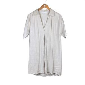 Preston & York Neutral Tan Linen Blend V-neck Collared Knee Length Shift Dress