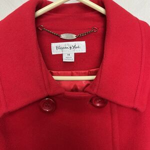 Preston & York | Red Wool & Nylon Pea Coat Double Breasted Pockets Size 14