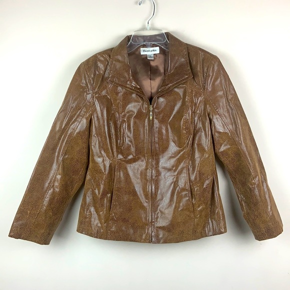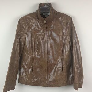 Preston & York Snake Print Front Zip Leather Jacket Size Medium