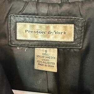 Preston & York Vintage Lamb Skin Leather Button Down Jacket Size S Black Moto
