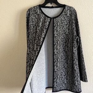 Preston York White Overlay Open Cardigan Black Candace Knit XL Formal Cocktail