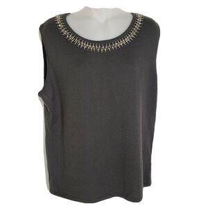 Preston & York Women's Tank Top Size XL Gray Embellished Beaded Knit Rabbit Hair