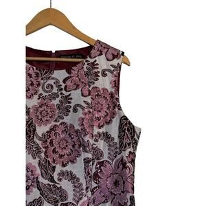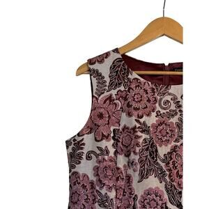 Preston & York Women's Whimsical Metallic Floral Sheath Mini Dress Size 12 Pink