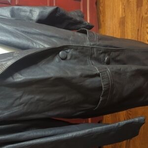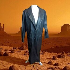 Preston & York vtg long sleek soft black leather Matrix witchy trench coat sz L