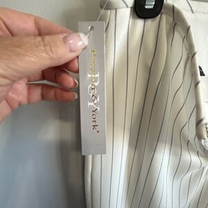 This knee-length pencil skirt by Preston & York features a sophisticated cream hue with elegant pleats and ribbed detailing. Perfect for work or cocktail occasions, its tailored fit and structured fabric offer a polished and professional appearance.