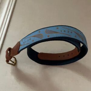 Preston light blue with gold stitching, Native American lacrosse sticks with leather buckle and belt end NWOT 28