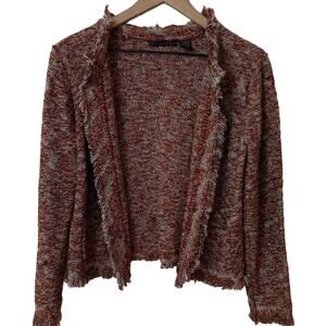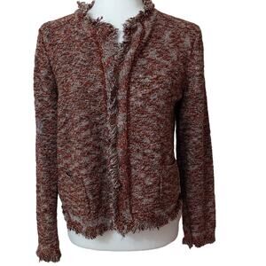Preswick & Moore cardigan with fringe trim. Has pockets.