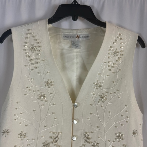 Preswick & Moore Ivory Button-Up Vest size:8 pearl accents Vintage Vest