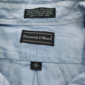 Preswick & Moore Men's Button Down Light Blue Shirt 16/34 Made in Hong Kong