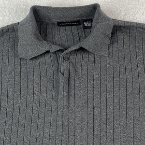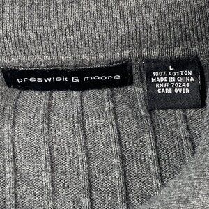 Preswick & Moore Pullover Sweater Ribbed Mens Large Gray Collar 2 Button 100% Cotton.