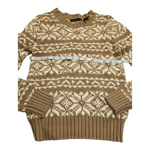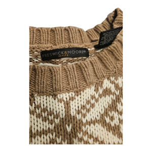 Preswick & Moore Small Petite Long Sleeve Tan and White Pullover Knit Sweater
