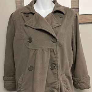 Preswick & Moore Sport Women Button Up Taupe Peplum Jacket with Pockets- Size 1X