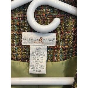 Preswick & Moore Tweed Blazer Sz 12P Green Brown Jacket Vintage Career Preppy