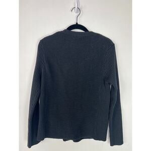 Preswick & Moore Womens Black Ribbed Knit Full-Zip Cardigan Sweater Size L