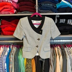 Preswick & Moore gray/white/black print 3button one snap blazer size 2P