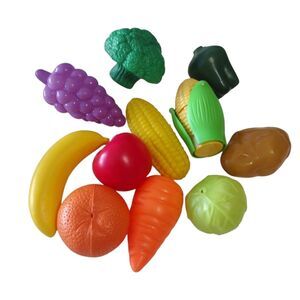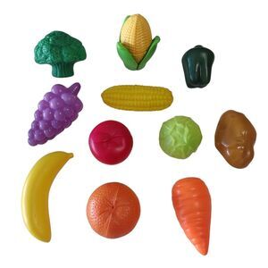 Pretend Play 20 pc Plastic Food Toy Lot - mix of fruits, veggies, sweet treats and drinks (milk, juice and green tea).
