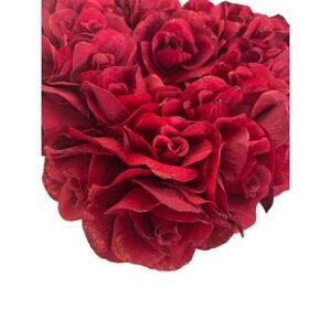 Pretty 13” Red Heart Shaped Wreath Roses Glitter Shimmery Accent Patriotic Love