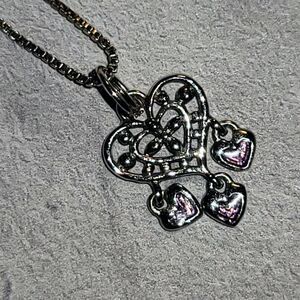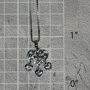Pretty .925 Sterling Silver Filigree Heart w/ Tiny Heart Charms On 18" Box Chain