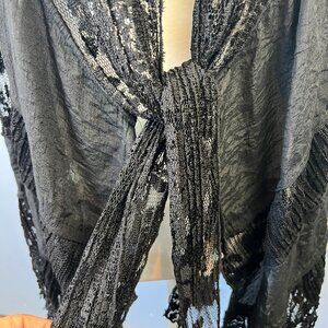 Pretty Angel Black Lace Tie Front Wrap Size S Witchy Whimsigoth Dark Romantic