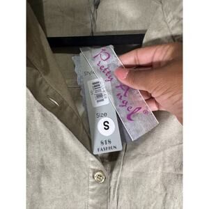 Pretty Angel Blouse Women S Short Sleeve Green Linen Blend Minimalist Lagenlook