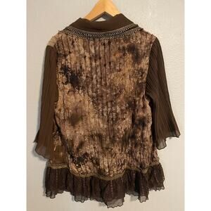 Pretty Angel Blouse Womens Small Brown Silk Blend Embellished Ruffle Lace FLAW
