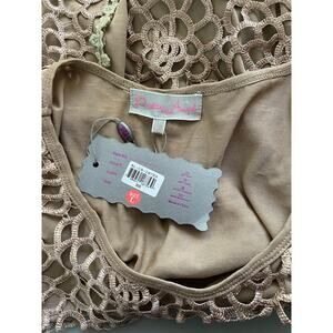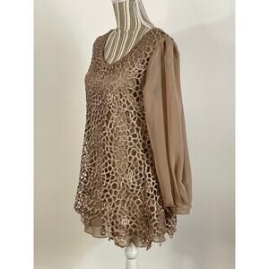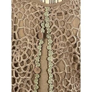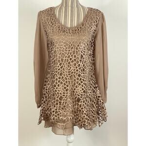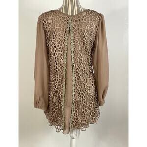 Pretty Angel Brown Open Crochet Lace Puff Sleeve Pullover Top Size Large NEW