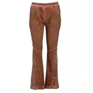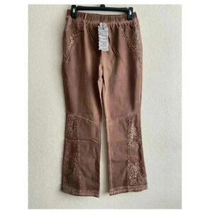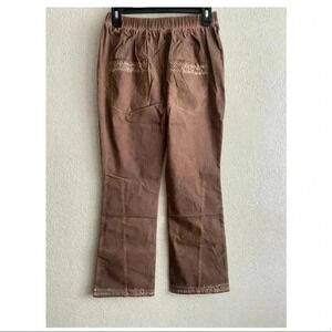 🆕Pretty Angel Coffee Lace-Accent Wide-Leg Linen Blend Pants S🆕
