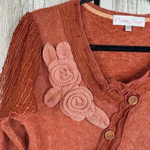 Pretty Angel Dress Small A Line Boho Flowers Crochet Rust Color