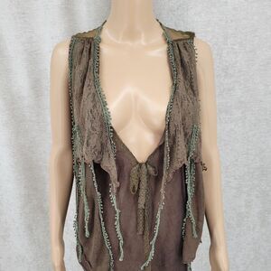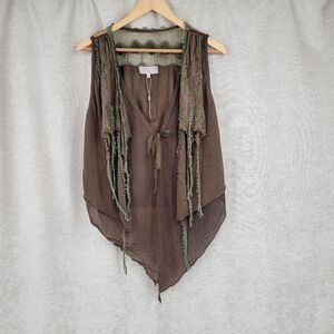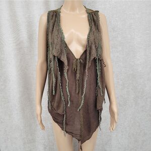 Pretty Angel Fairycore Boho Hippie Tie Front Vest Top Linen Blend Women's Size L