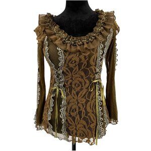 Pretty Angel Green Lace Top Womens S Ruffled Fairy Core Lace Gypsy Whimsigoth